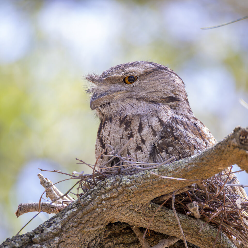 For wildlife photographers, tawny frogmouths offer a rewarding challenge. Their stillness allows for careful composition, but their cryptic plumage demands close attention to light, texture and background. They fly completely silently, and if one turns its head away, you may never spot it again. Early morning and late afternoon light can reveal subtle feather details, especially when side lighting brings out the bark-like patterns that make them such extraordinary subjects. Capturing a frogmouth mid-yawn, wing stretch or feeding run can turn a quiet perch into a powerful storytelling image — one that celebrates both their mystery and their place in Australia’s natural landscape. After seeing one yawn up close, I’ve set myself the long-term goal of photographing the full interior of that massive mouth front-on. We’ll see how long it takes to get that shot.
