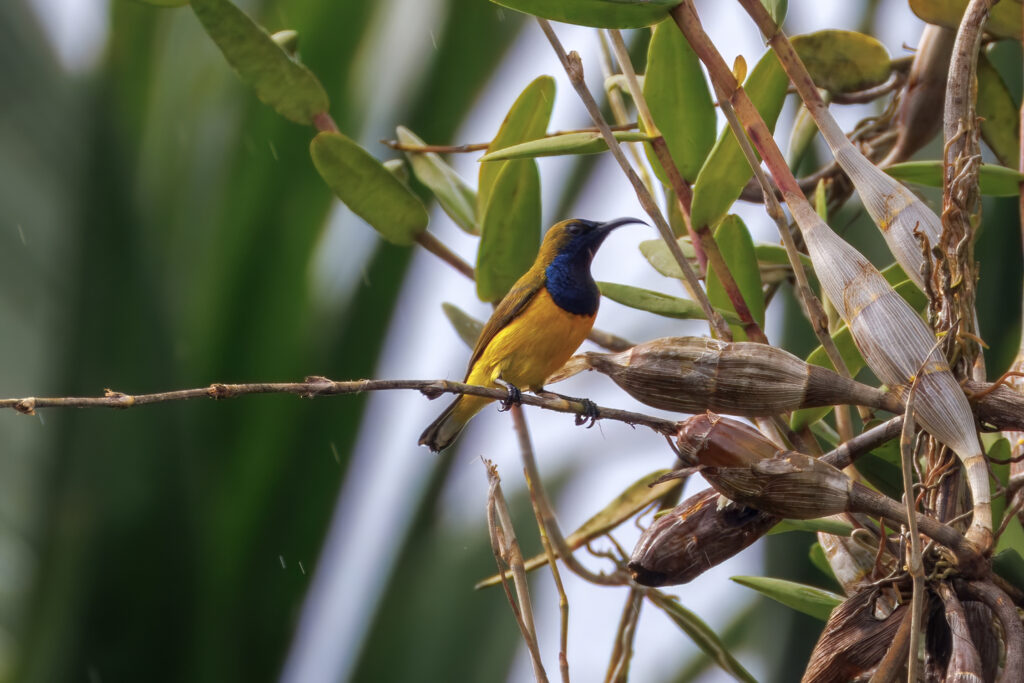 But the second image in the series added an extra layer of personality. In this shot, I captured a hilarious moment from the life of grey-headed honeyeaters. Two of the birds are perched on top, looking down at a third bird who’s hanging from a foot—literally, clinging on with one foot as it dangles below the others.
