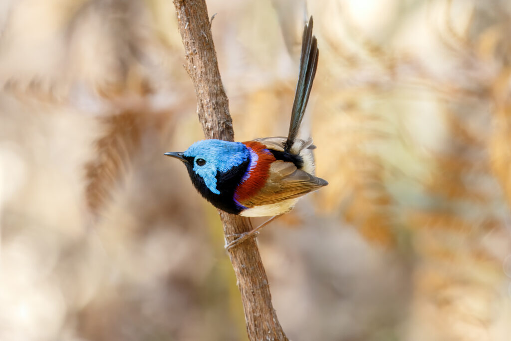 Before I dive into the individual species, let me tell you a bit about fairywrens in general. These birds are bursting with energy, constantly on the move—darting between twigs, bouncing through grass, and flicking their tails upright like tiny peacocks. Despite their bold colours, they’re not always easy to spot. They’re some of the smallest birds in Australia, weighing just 8 to 13 grams—about the same as a $2 coin.